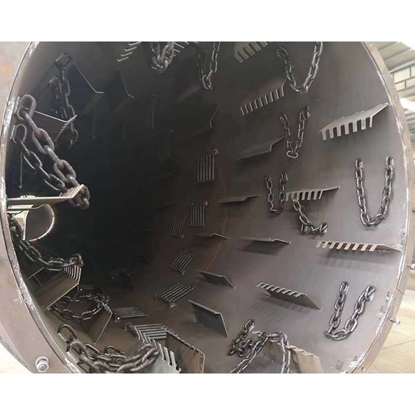 La secadora se compone principalmente del cabezal de alimentación y descarga, el motor, el tambor y la base de la rueda de soporte: la máquina adopta el proceso de secado de flujo y sellado, y cuando el material ingresa a la secadora, los materiales se dispersan uniformemente en el rodillo. Secadora y totalmente en contacto con el aire caliente. Bajo el giro de la placa de elevación distribuida uniformemente en el cuerpo del tambor, lo que acelera el secado y la transferencia de calor. Durante el proceso de secado, bajo la acción de la placa elevadora inclinada y el aire caliente, el material se descarga al otro extremo de la secadora y el producto terminado se puede descargar de forma continua.